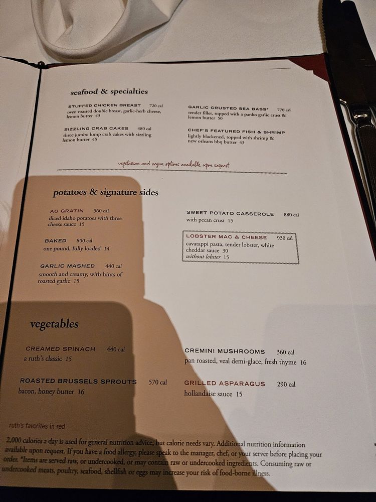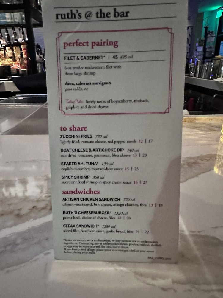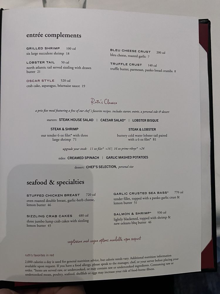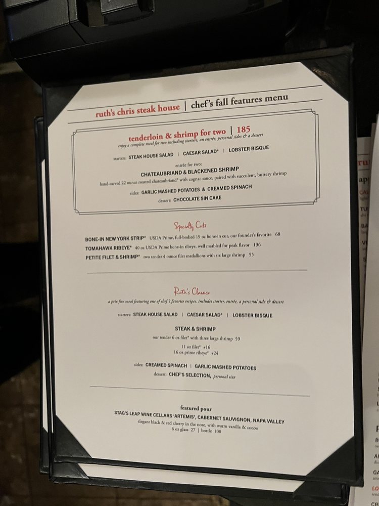 Finish with indulgent desserts like Chocolate Sin Cake to complete your experience. Renowned for exceptional service and a luxurious ambiance, Ruth's Chris promises a dining experience that lingers long after the last bite.